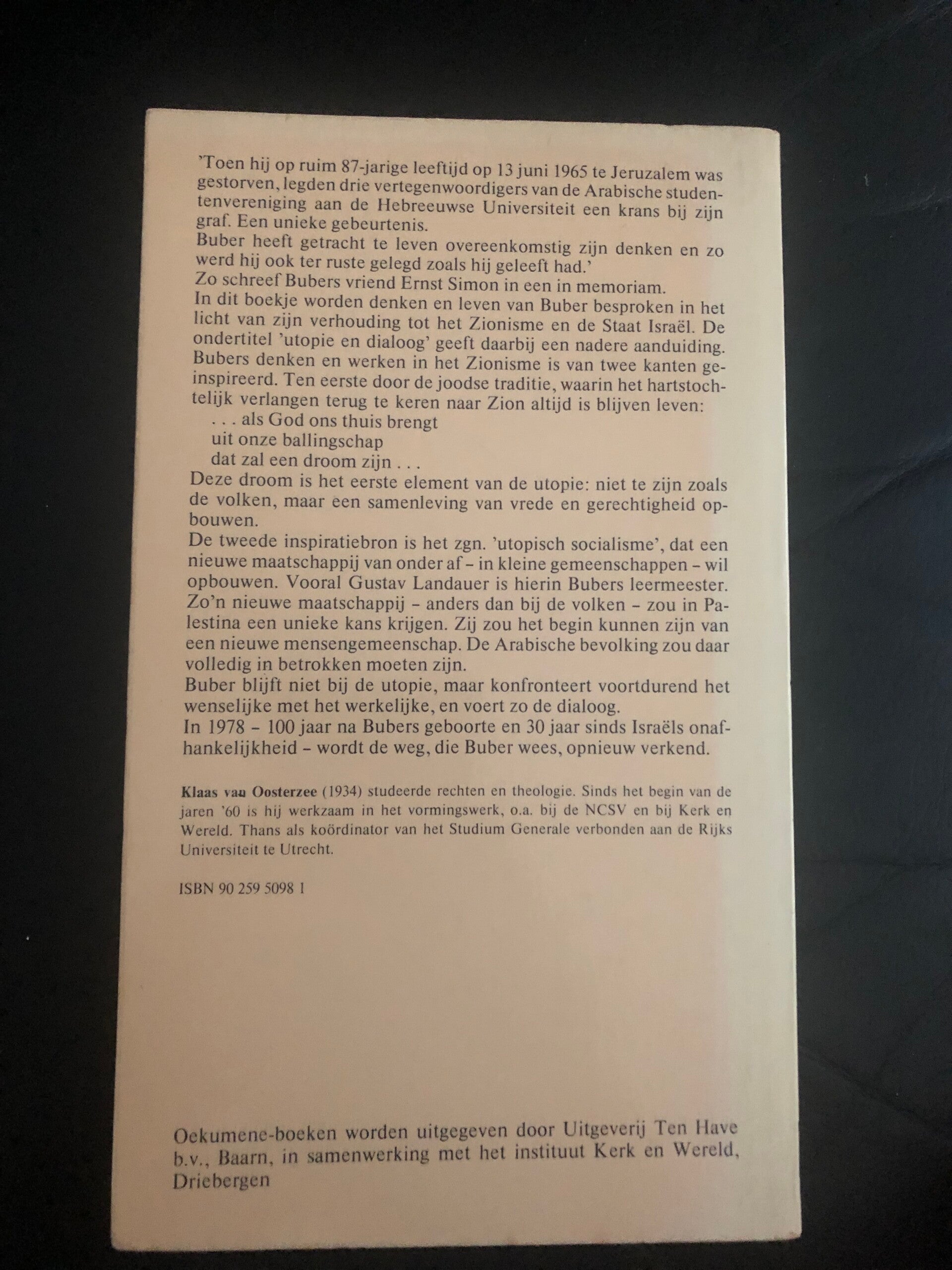 Buber e Israel. utopie en dialoog. Schrijver: Klaas van Oosterzee