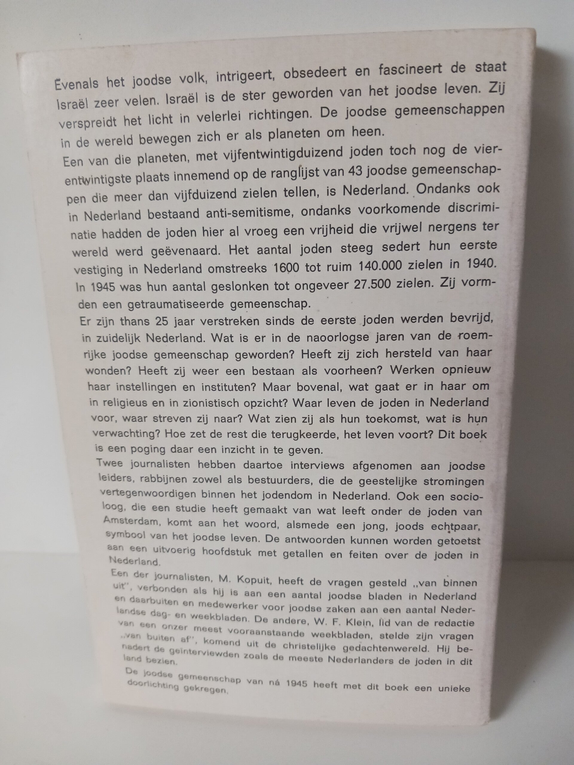 De joden in Nederland. Een beeld van hun leven na 145. Schrijver: W.F.Klein M.Kopuit