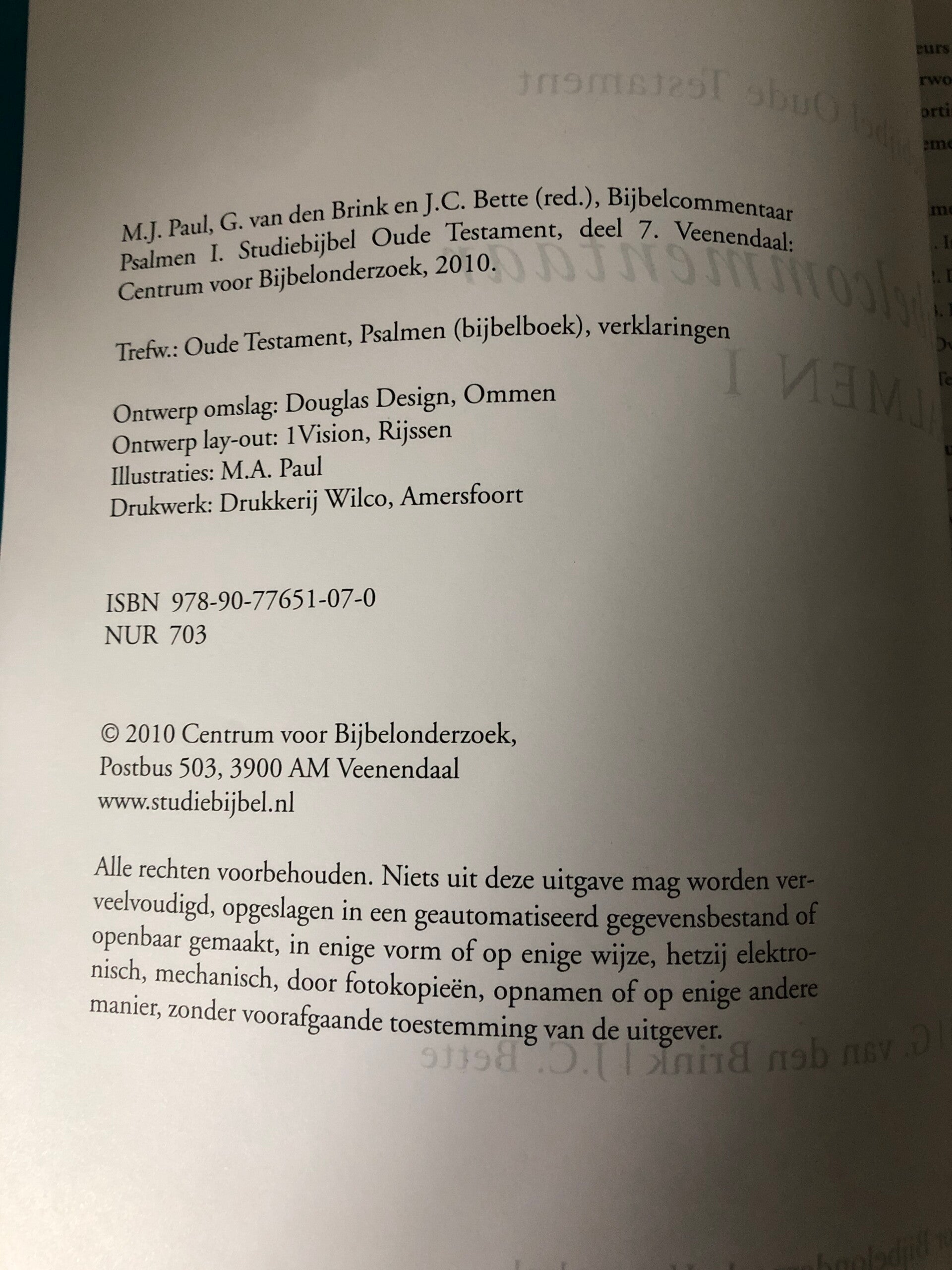 Bijbelcommentaar: Psalmen 11-Spreuken Prediker. Schrijver: M.J.Paul/ G.van den Brink/ J.C.Bette