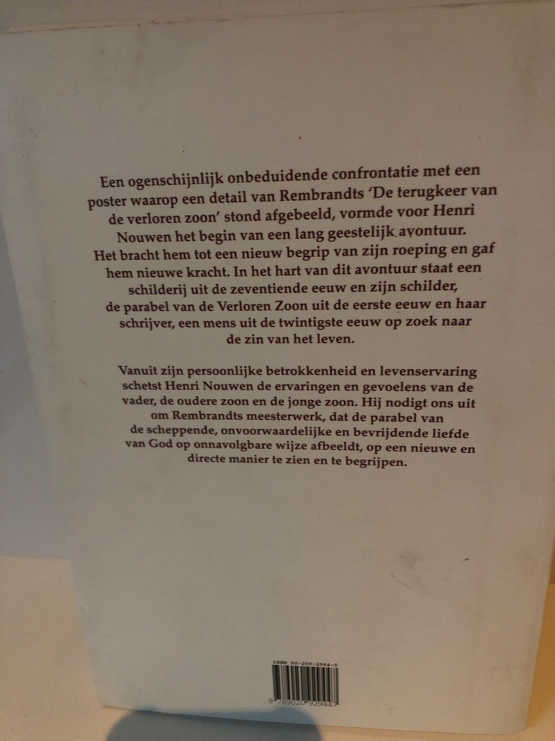 Eindelijke thuis. gedachten bij Rembrandts 'De terugkeer van de verloren zoon" schrijver: henri Nouwen.
